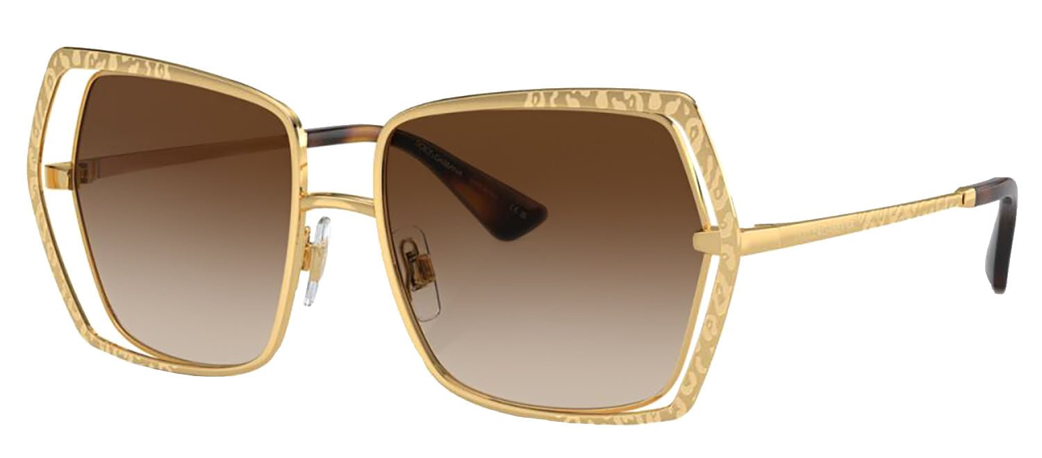 DOLCE & GABBANA DG 2306 02/13 Butterfly Gold Metal Sunglasses with Gradient Brown Lens