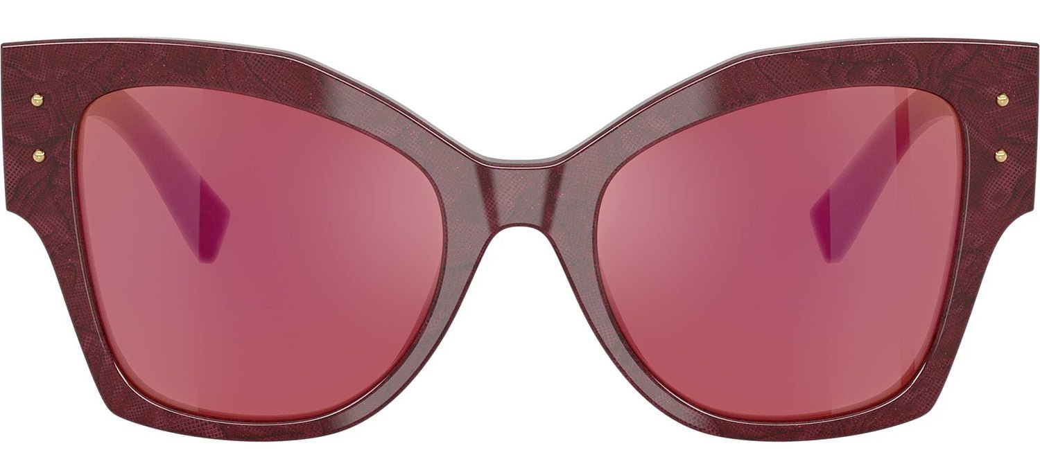 DOLCE & GABBANA DG 4478 3442D0 Cat Eye Bordeaux Lace Acetate Sunglasses with Dark Violet Mirror Red Lens
