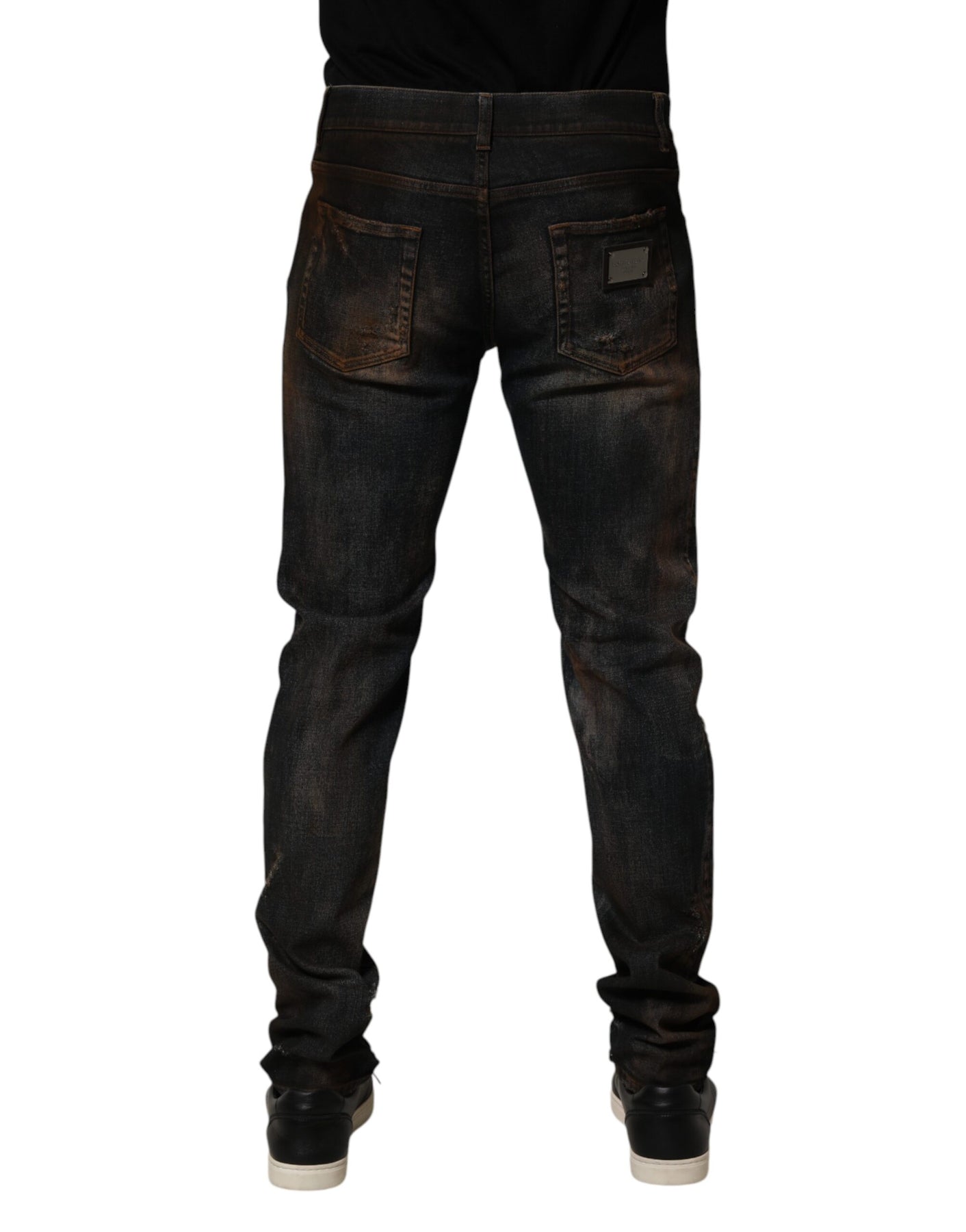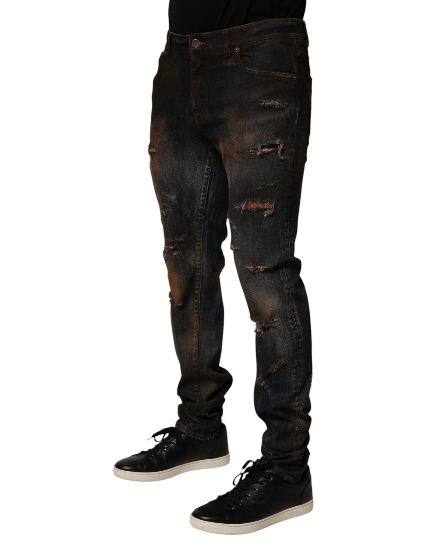 Dolce & Gabbana Black Cotton Skinny Tattered Men Denim Jeans