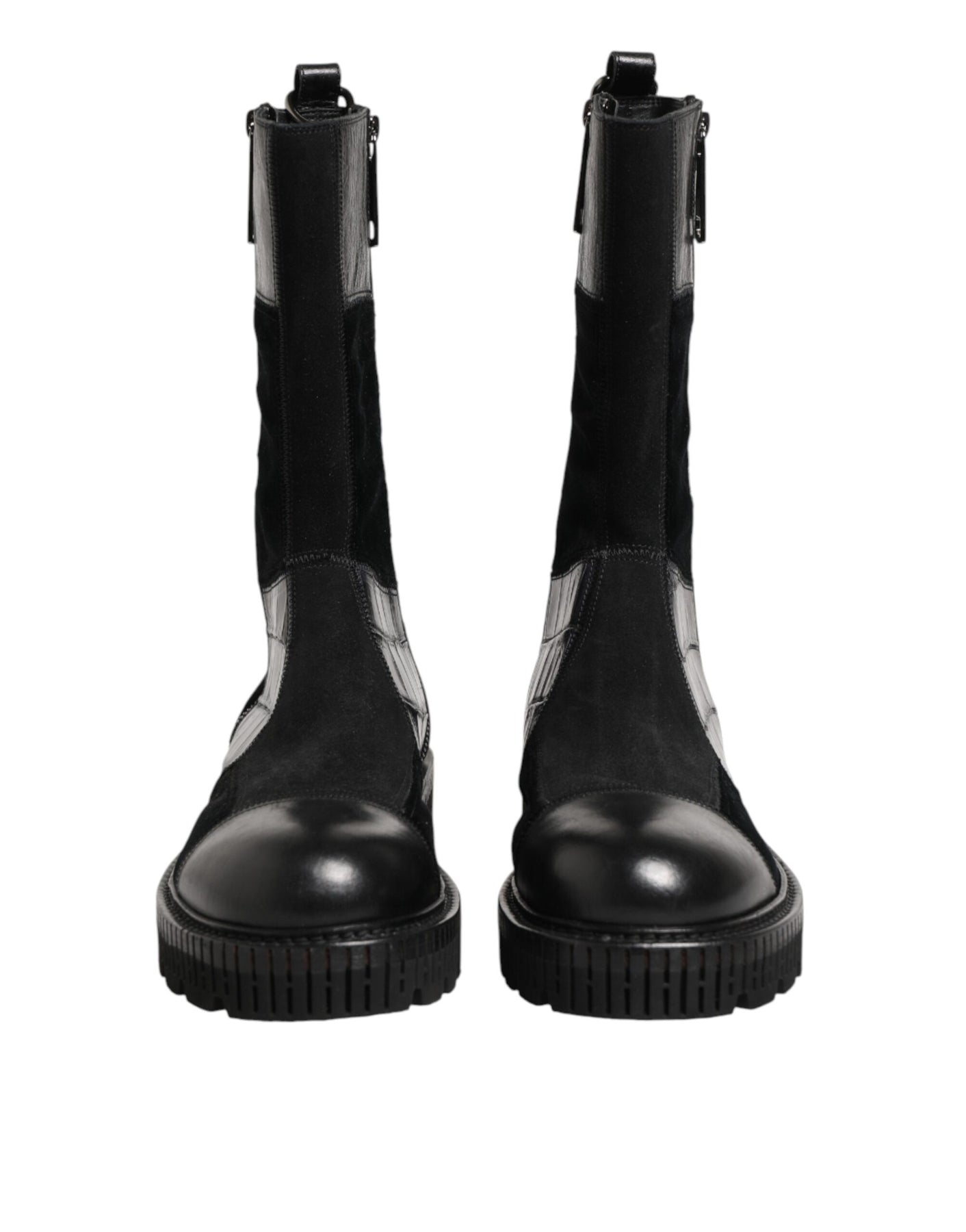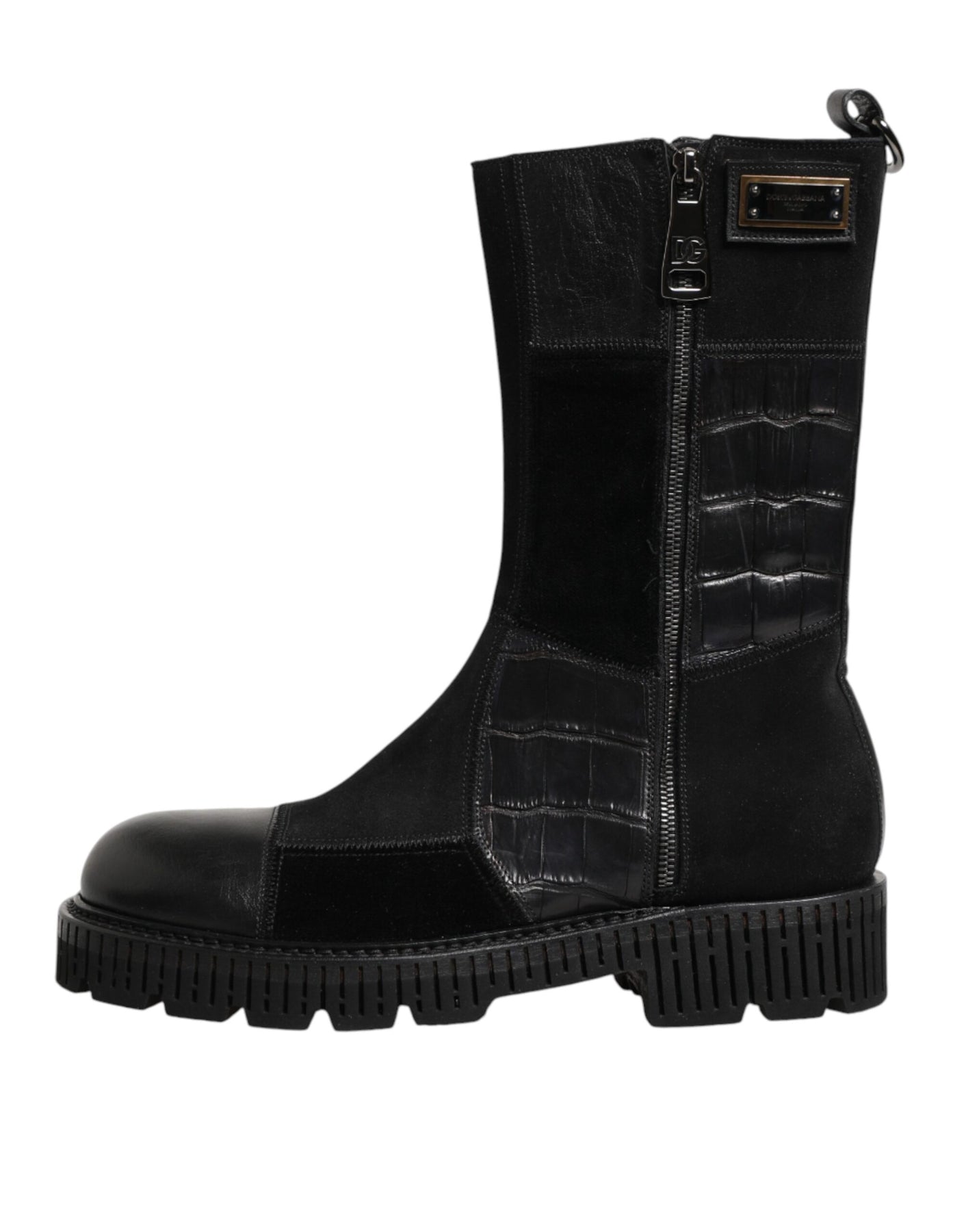 Dolce & Gabbana Black Patchwork Leather Mid Calf Boot Shoes