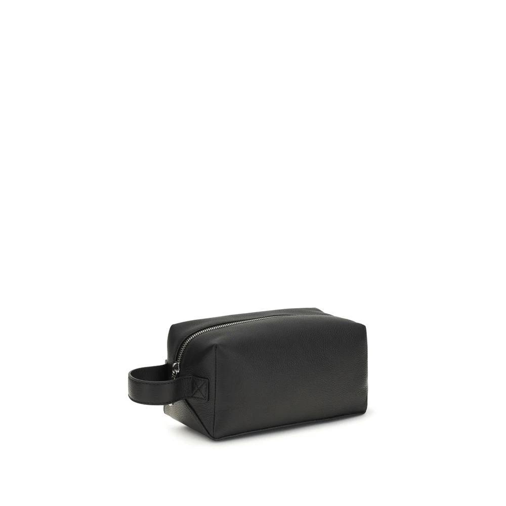 The Lui leather Beauty Case is crafted from black grained calfskin and features a zip closure. It has a side handle and is embellished with metal FF appliqués at the corners, and is finished with palladium-plated metal hardware and a fabric-lined interior, combining elegance and practicality.