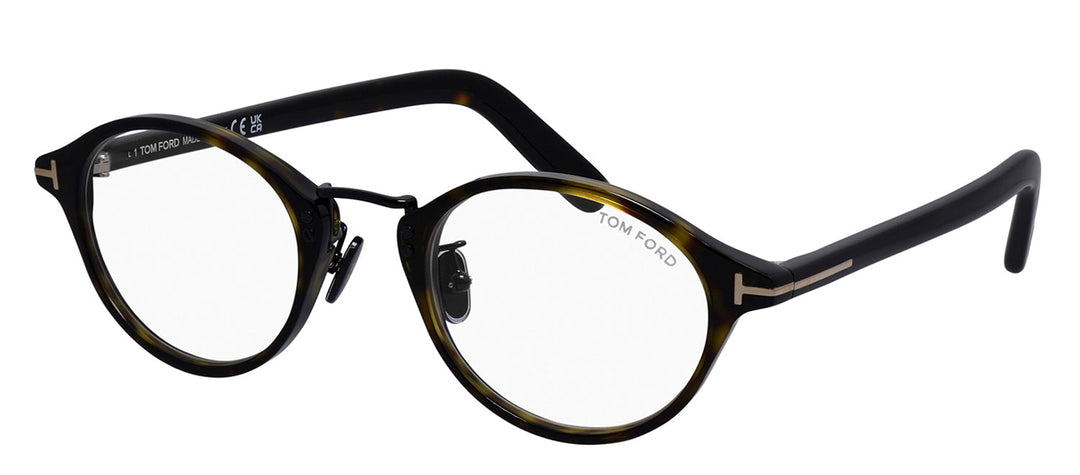 Tom Ford FT 5920-D-B 052 Round Plastic Black Eyeglasses with Logo Stamped Demo Lenses
