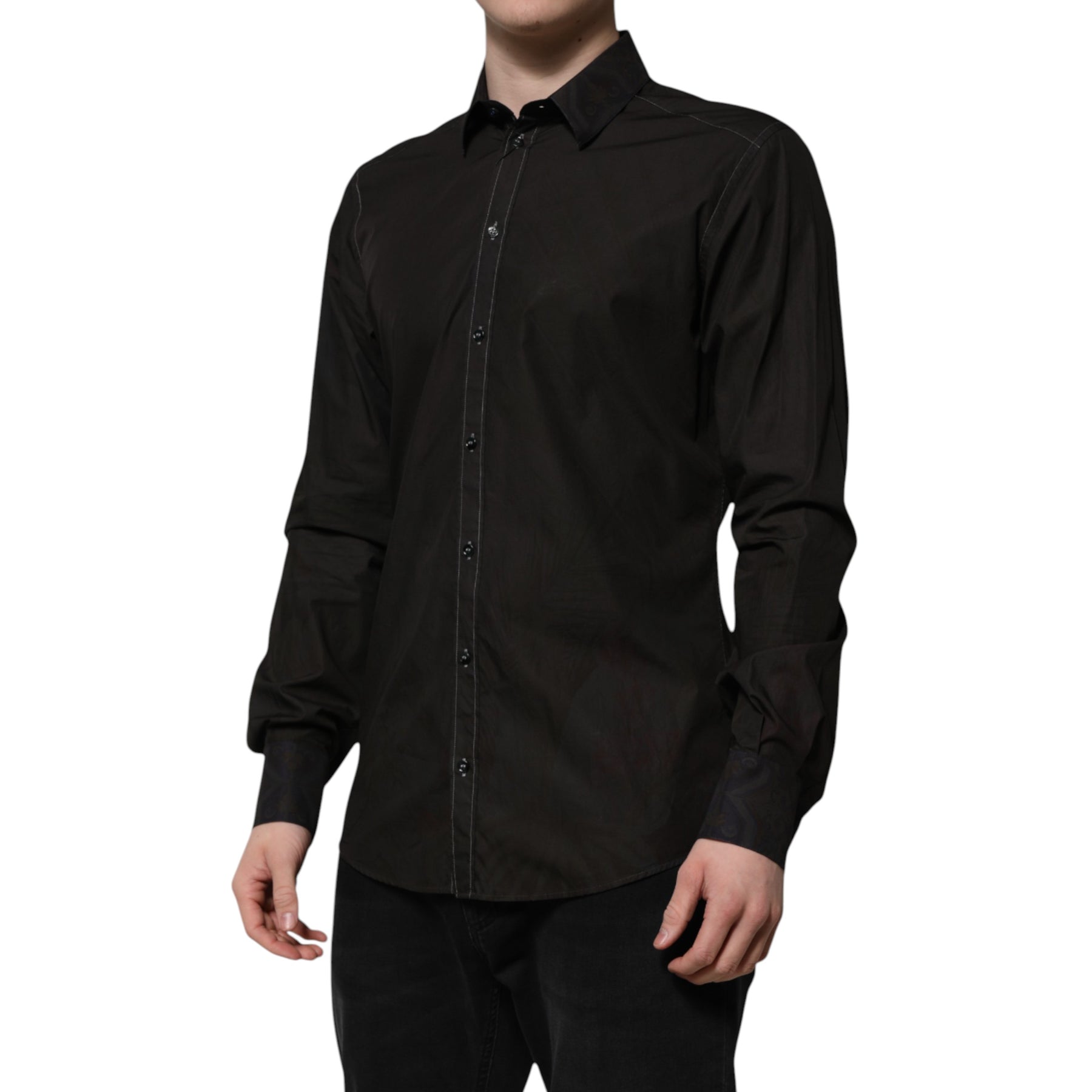 Dolce & Gabbana Black Cotton Jacquard GOLD Collar Dress Shirt