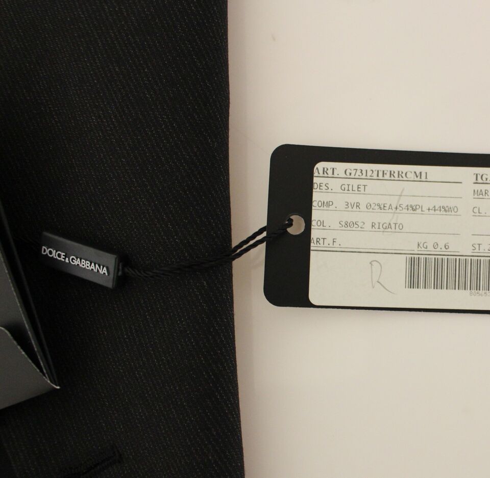 Elevate your formalwear with a touch of luxury. This Dolce & Gabbana gray wool stretch dress vest is crafted for men who value impeccable tailoring and versatile styling, whether worn under a suit jacket or as a standout piece on its own.