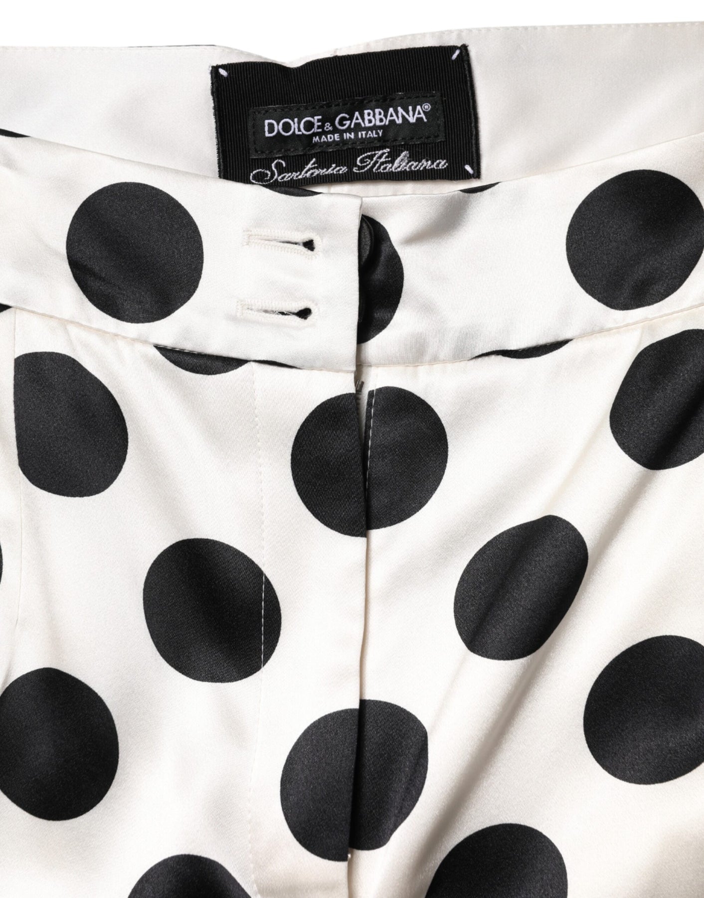 Dolce & Gabbana White Black Polka Dot Silk Mid Waist Cropped Pants