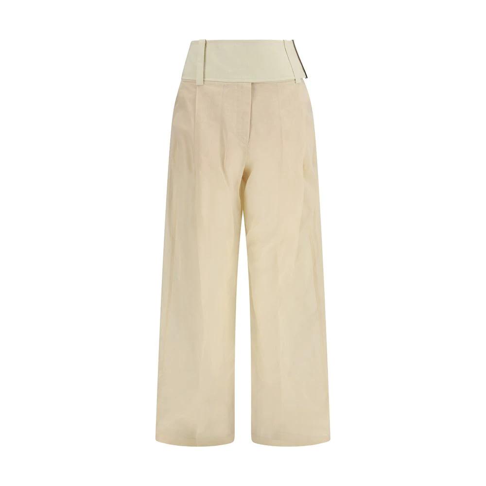The Ferito Pants by Sportmax stand out for a wide silhouette that enhances movement with a light and fluid attitude. The Ferito model by Sportmax is crafted in organza-style pure cotton voile and features a low waist with a cotton poplin waistband enriched by a metal detail. A crease along the leg expands the volume and defines the structure of the garment. Side seam pockets and back welt pockets complete the Ferito pants by Sportmax with a regular and contemporary fit.