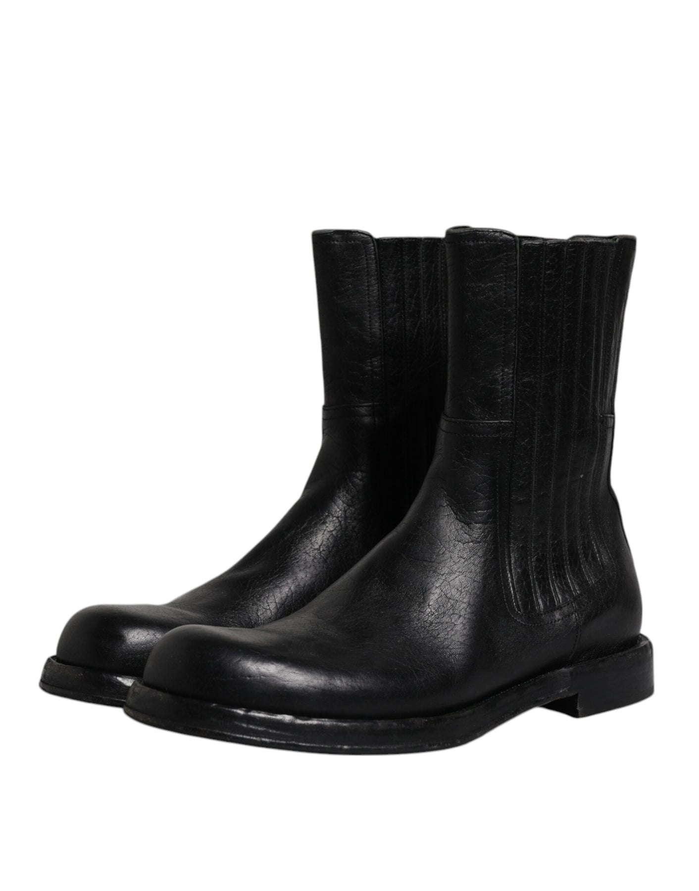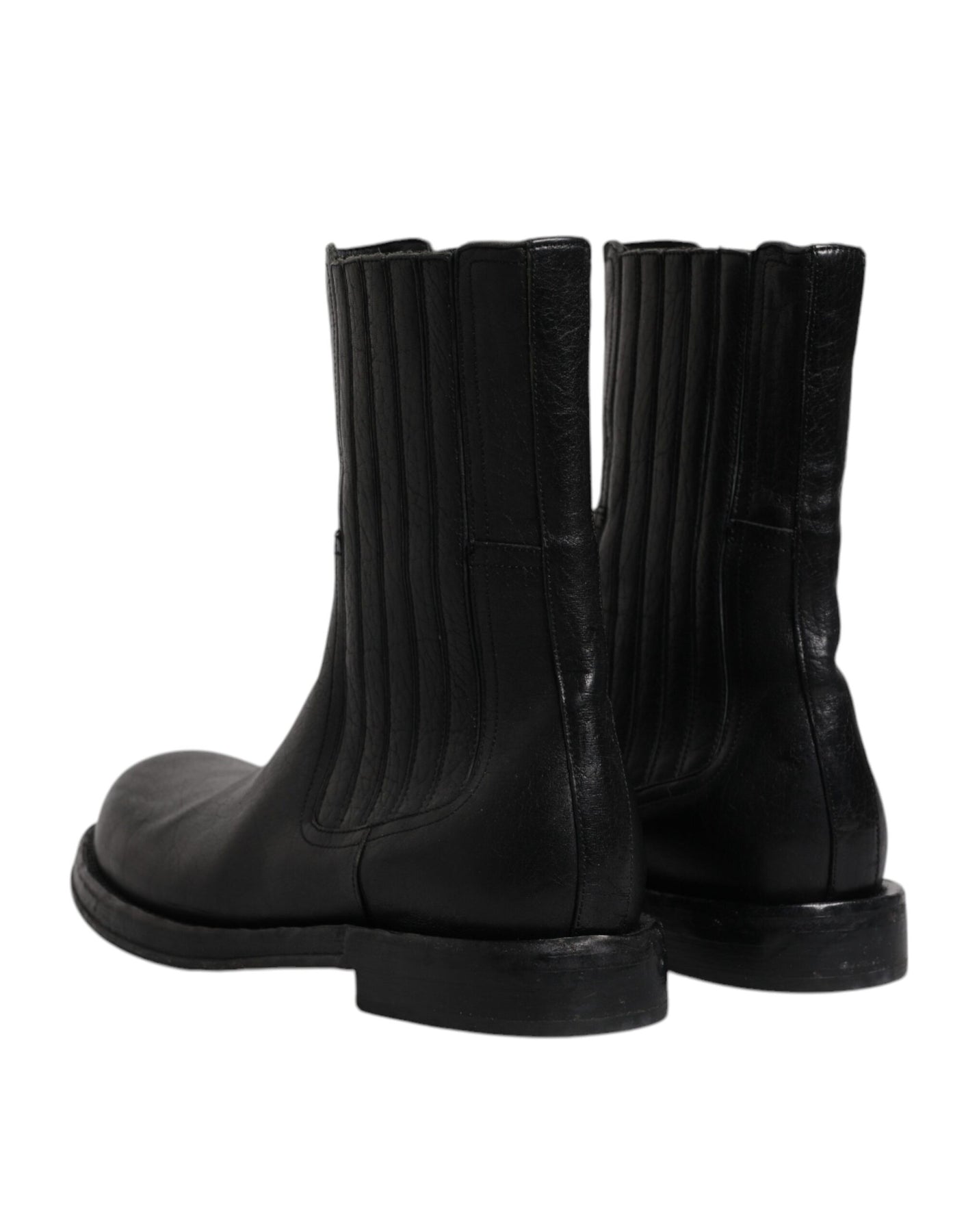 Dolce & Gabbana Black Horse Leather Mid Calf Boots Shoes