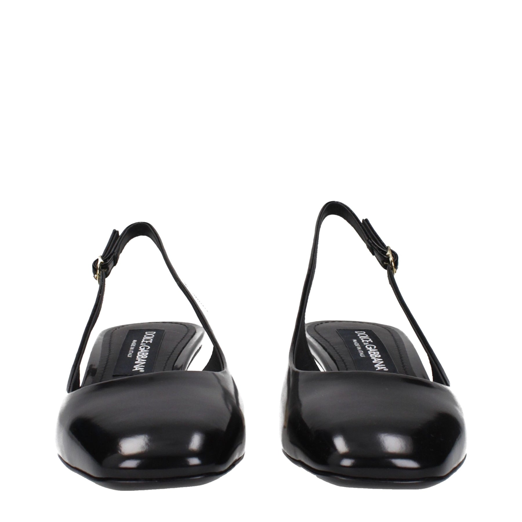 Dolce & Gabbana Black Leather Mid Heel Pumps