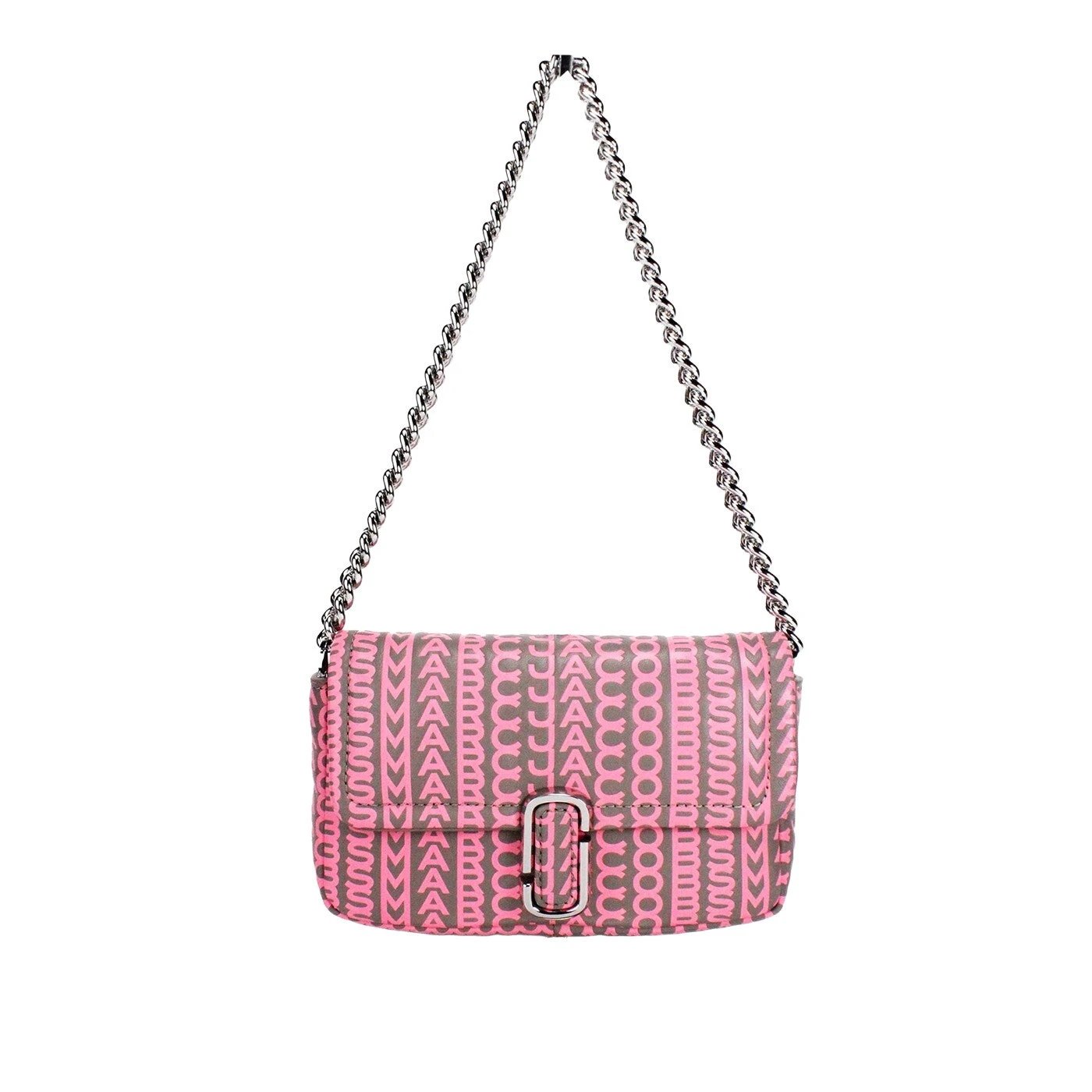 Elevate your accessory game with the Marc Jacobs Neon Pink The Monogram Leather J Marc Mini Shoulder Bag, a perfect blend of luxury and practicality. Crafted from high-quality leather, this stunning piece features an eye-catching neon pink exterior adorned with the iconic Marc Jacobs monogram pattern. Its contemporary design is complemented by a magnetic closure that ensures your essentials are securely kept while maintaining effortless access.