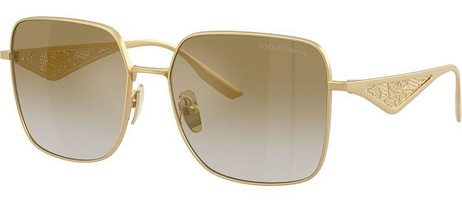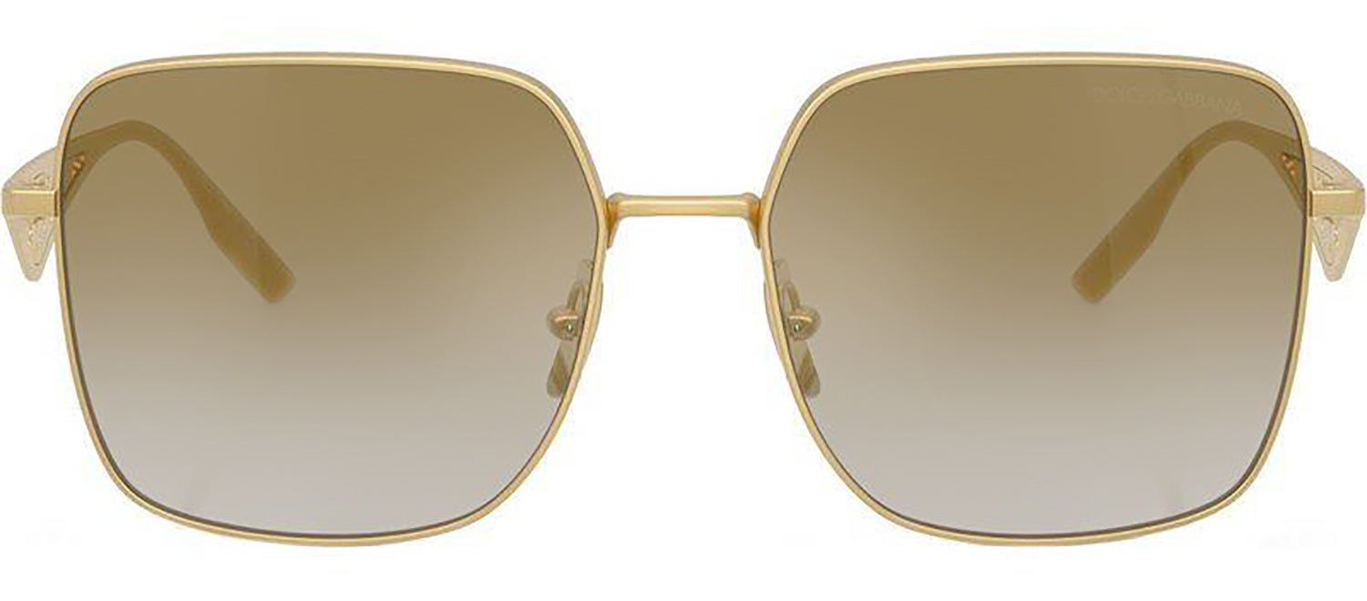 DOLCE & GABBANA DG 2310 12246E Square Matte Gold Metal Sunglasses with Grad Light Brown Mirror Gold Lens