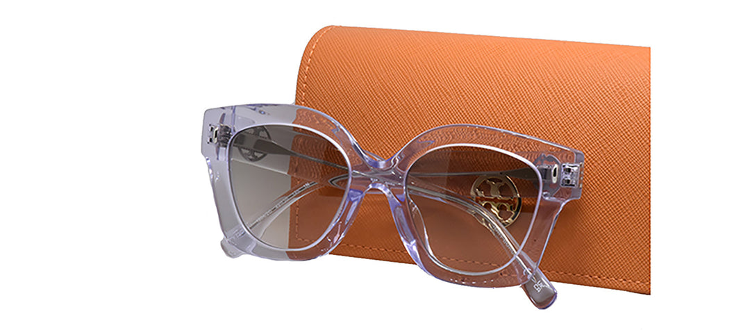 Tory Burch TY 7201U 19842C Irregular Plastic Clear Sunglasses with Brown Gradient Lens