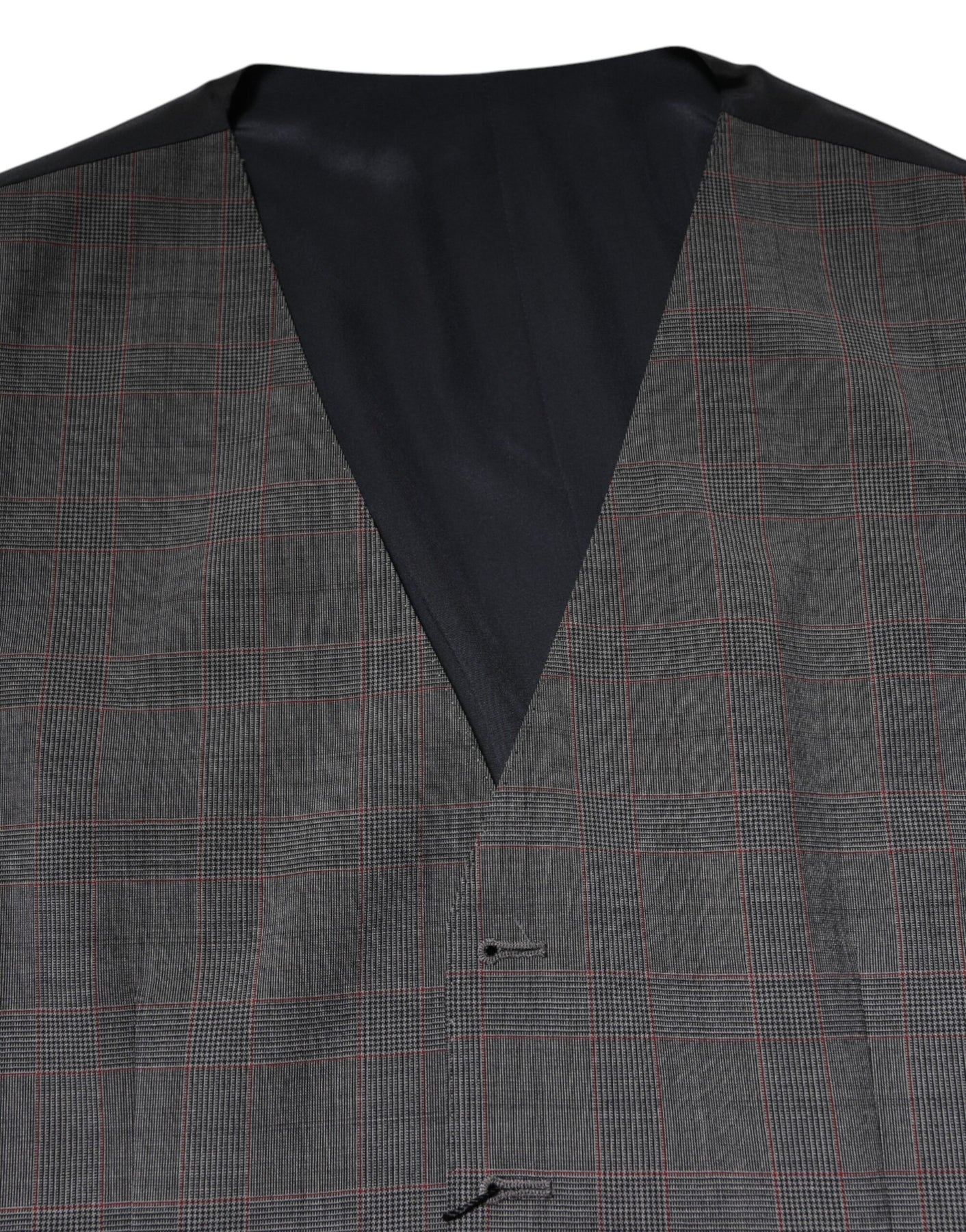 Dolce & Gabbana Gray Plaid Wool Formal Dress Waistcoat Vest
