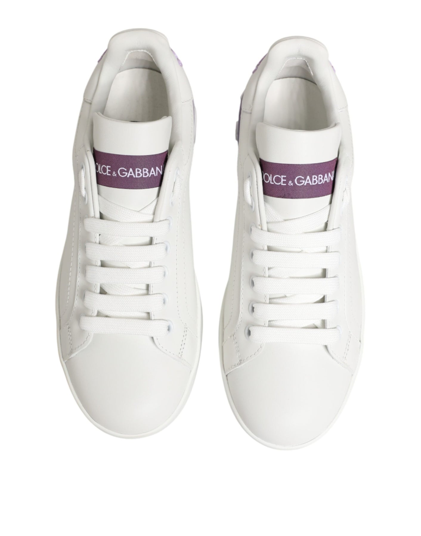 Dolce & Gabbana White Purple Leather Casual Sneakers Shoes