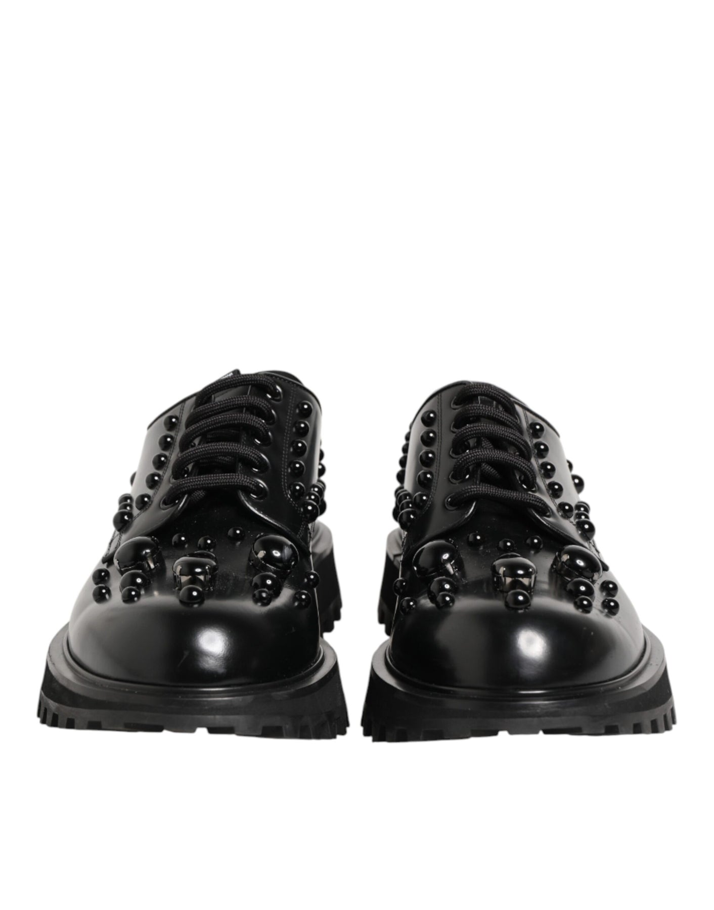 Dolce & Gabbana Black Leather Studded Men Formal Derby Shoes