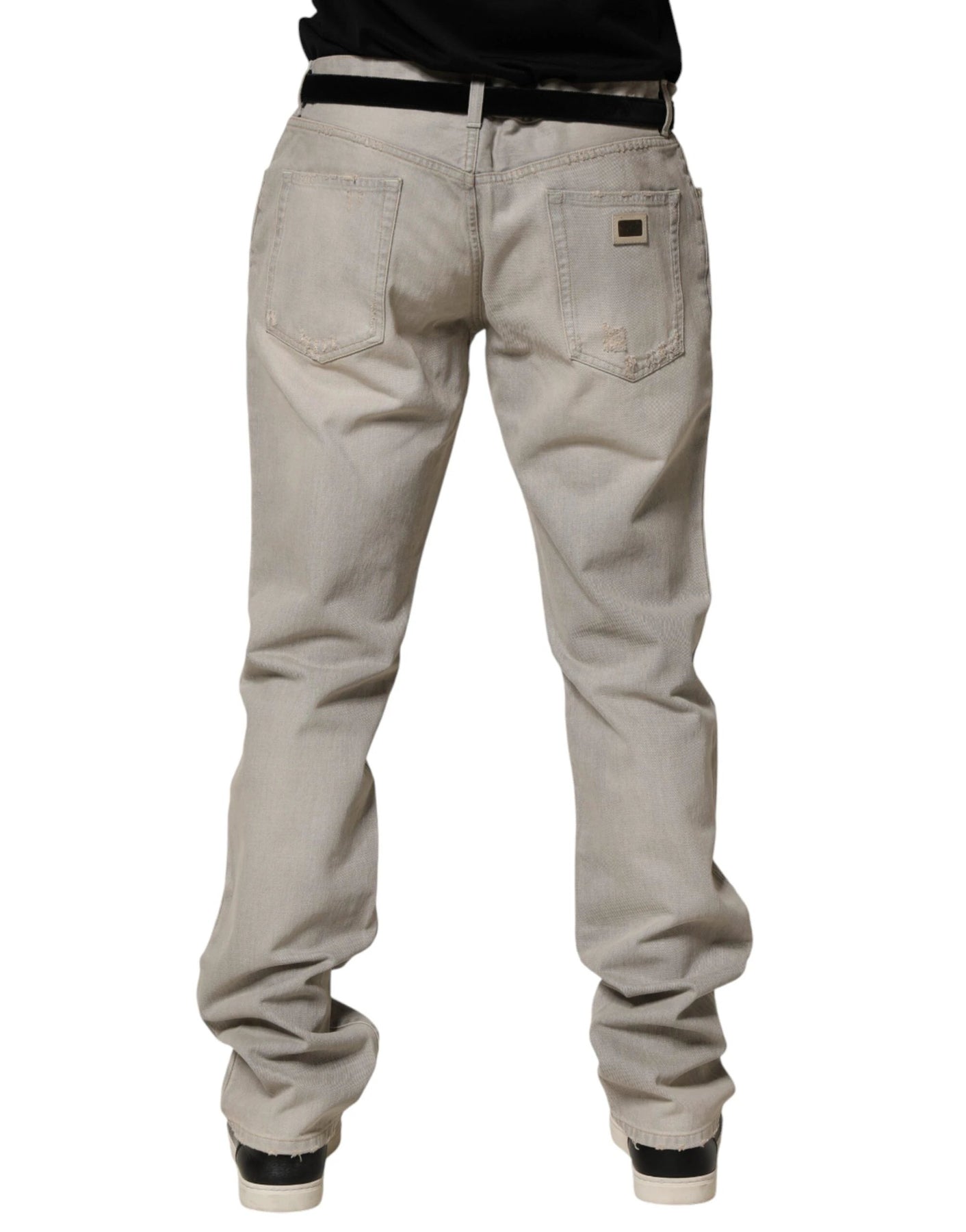 Dolce & Gabbana Light Gray Cotton Straight Denim Trouser Jeans