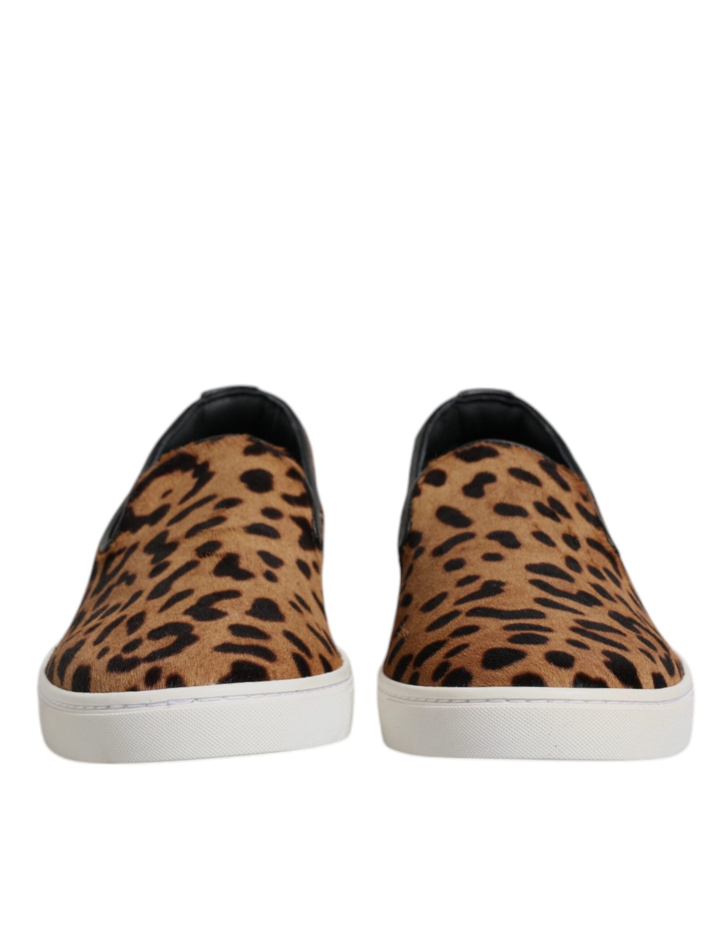 Dolce & Gabbana Brown Calfskin Fur Leopard Sneakers Shoes