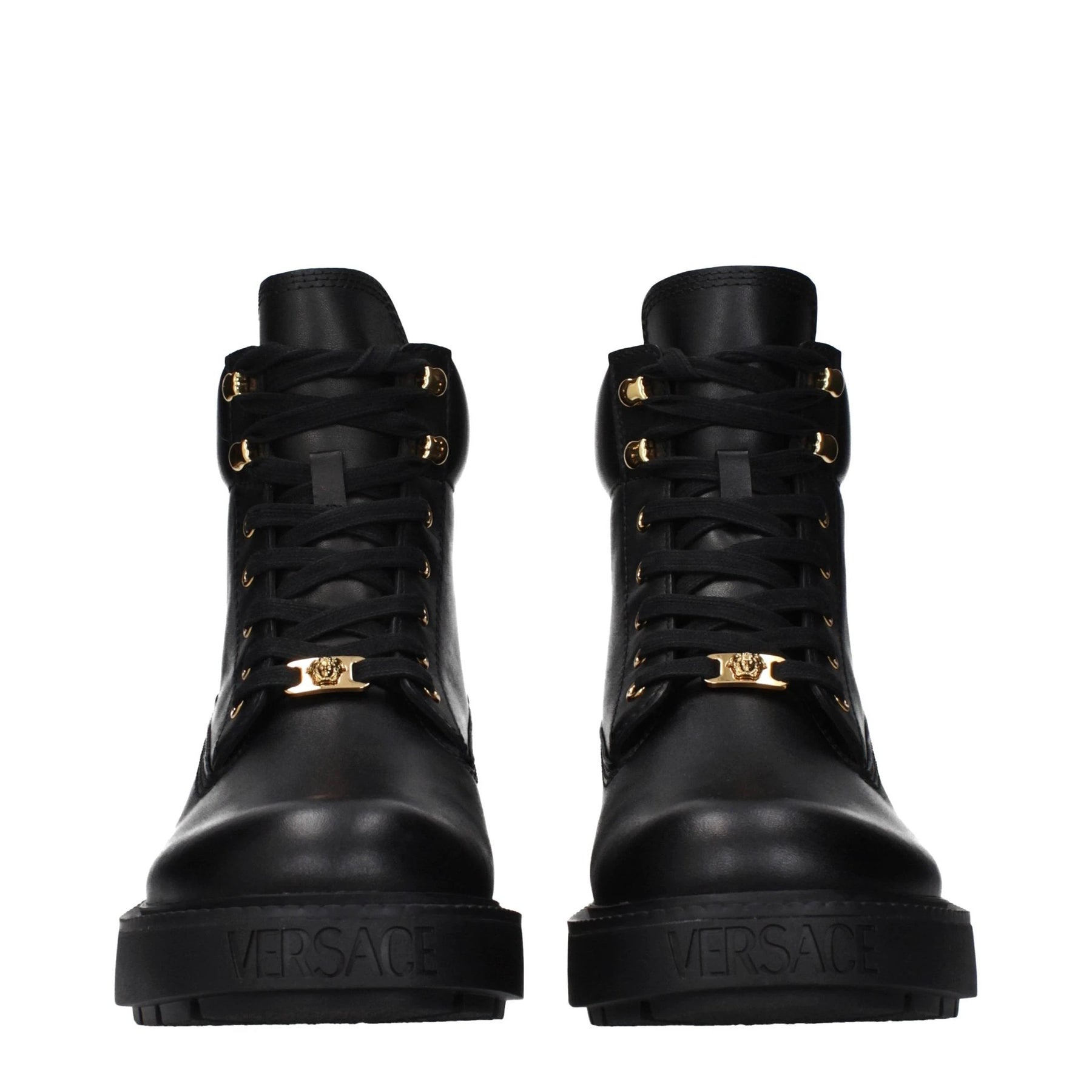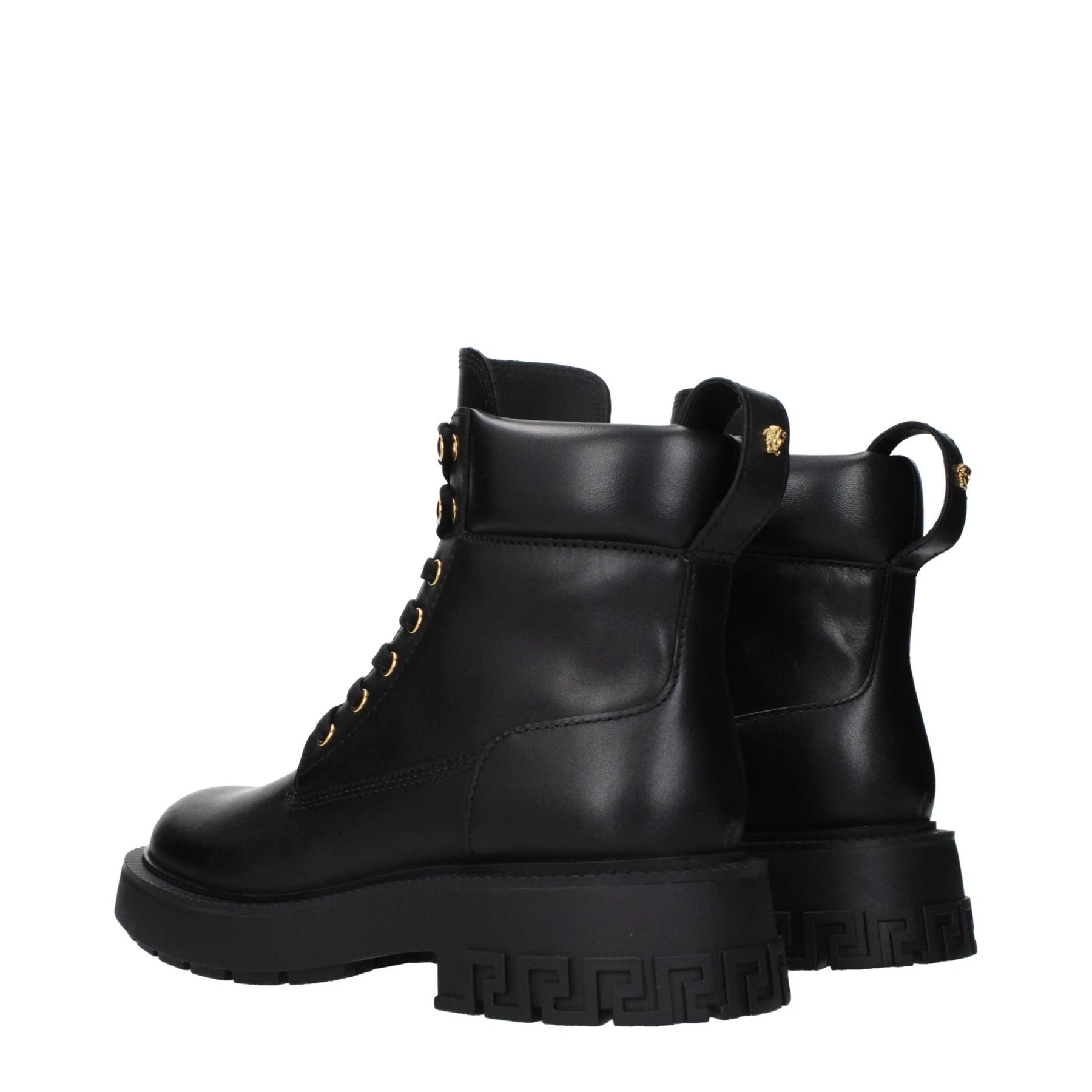 The product with MPN 10178731A127561B00V and code F86276 leather in black is a ankle boots designed by Versace. It has features like front detail, back detail, front logo.