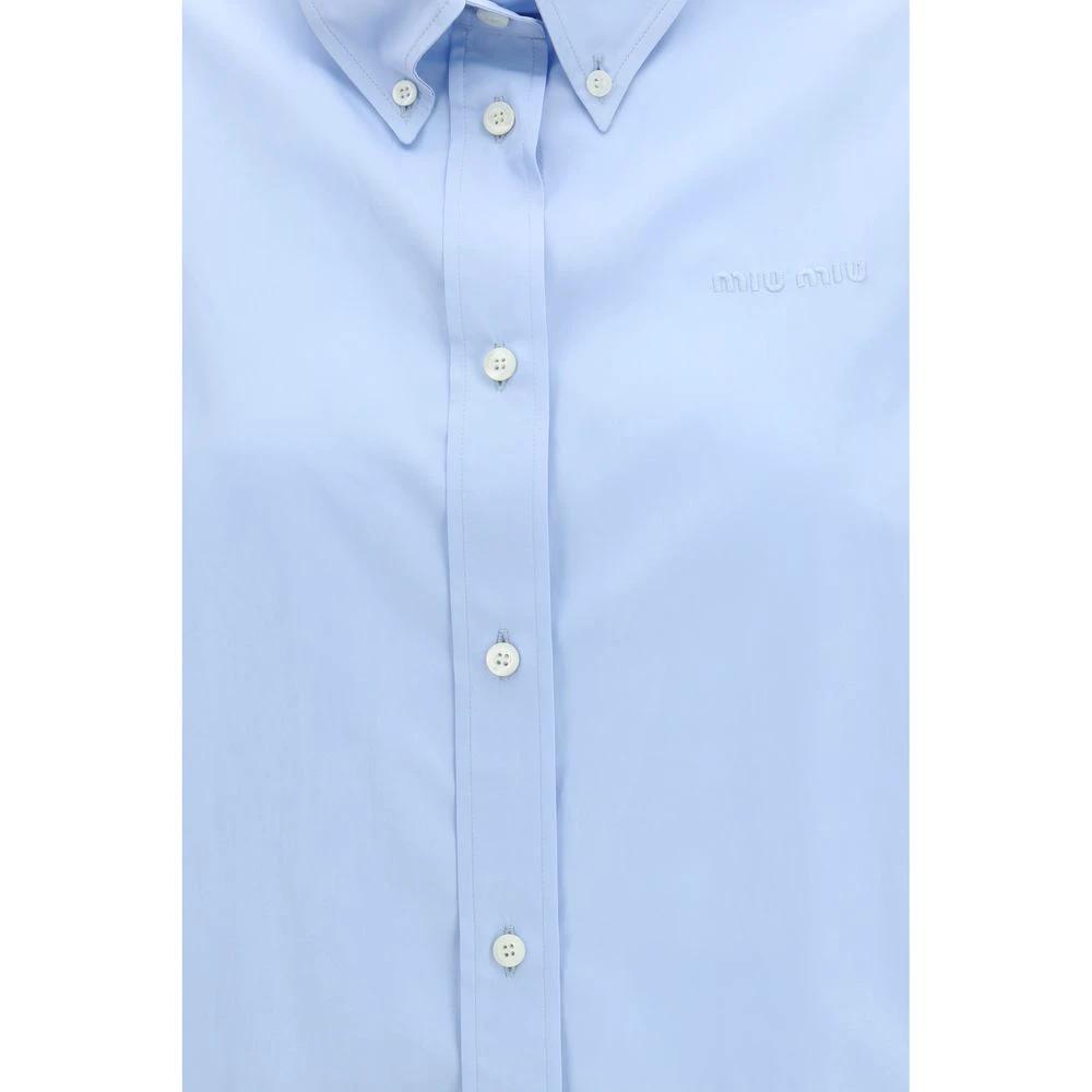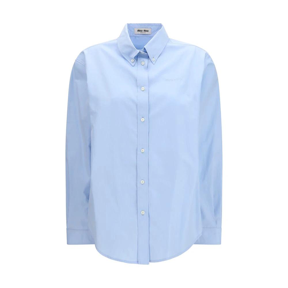 The embroidered Shirt by Miu Miu features a clean and refined design. It is defined by a button-down collar, front button closure, and long sleeves. The style is finished with a rounded hem and an embroidered logo, adding a distinctive contemporary touch.