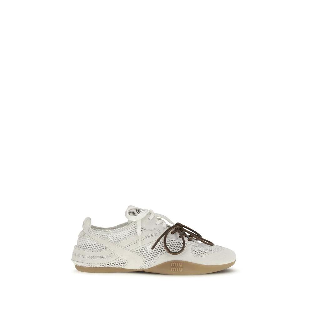 Miu Miu White Calf Leather Bos Taurus Athletic Sneakers