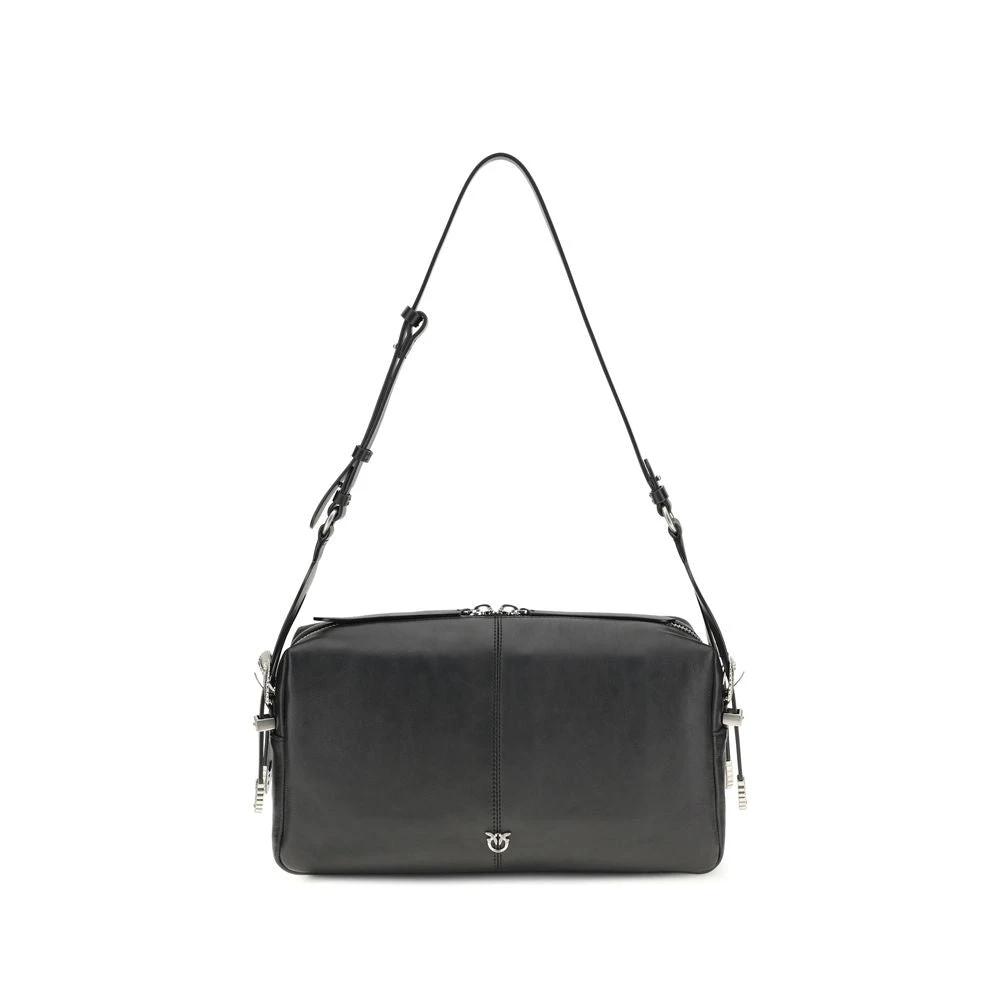 PINKO Black Calf Leather Bos Taurus Shoulder Bag