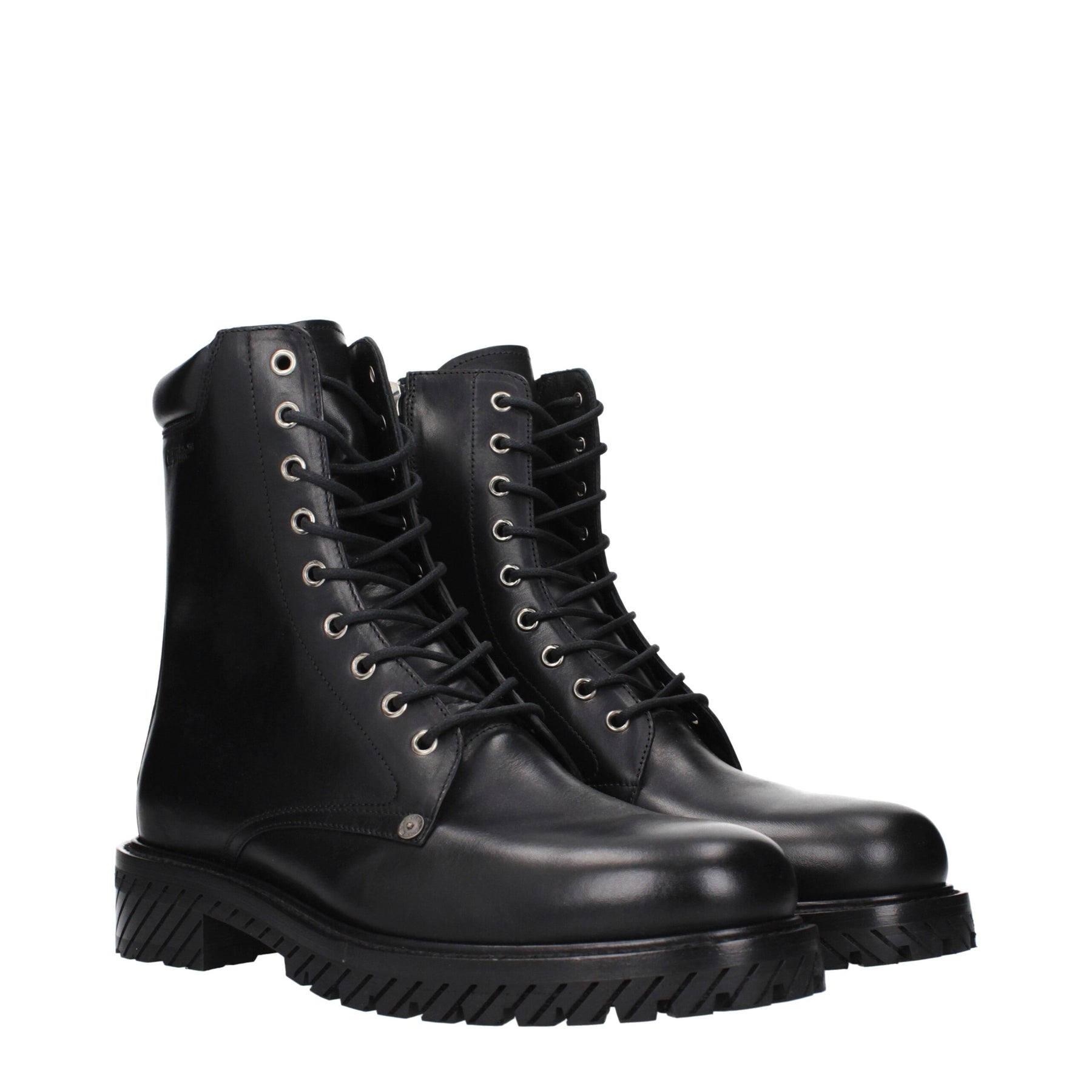The product with MPN OMID025LEA0011010 and code F84974 leather in black is a ankle boots designed by Off-White. It has features like side logo, vintage effect, aged effect.