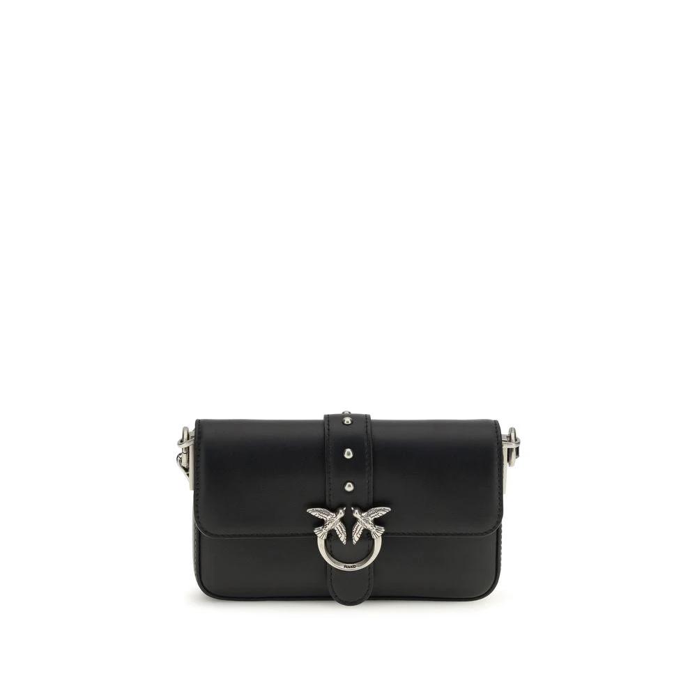PINKO Black Calf Leather Bos Taurus Shoulder Bag
