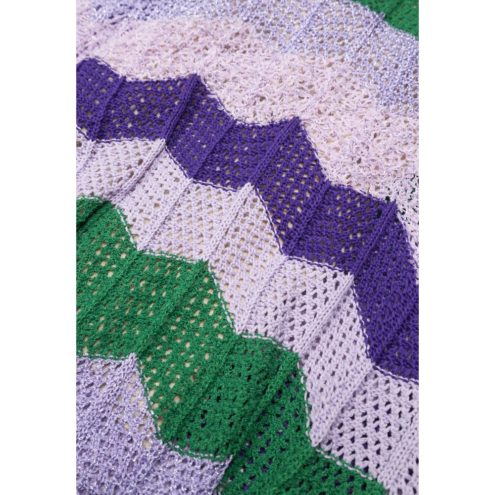 - Design details: Openwork knit with wavy lines, sheer elements, and side waist cut-outs