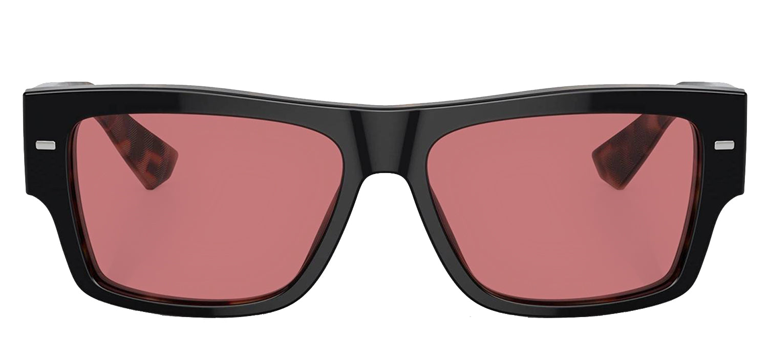DOLCE & GABBANA DG 4451F 34177N Rectangle Black On Red Havana Acetate Sunglasses with Purple Brown Lens by DOLCE & GABBANA outlet now on sale