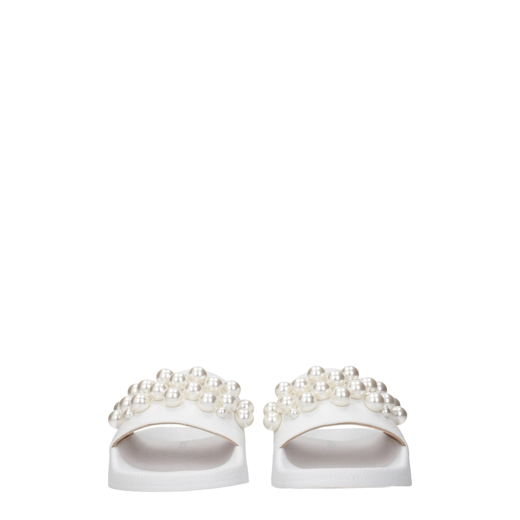 The product with MPN GOLDIESMOSA887WHT and code F70203 leather in white is a slippers and clogs designed by Stuart Weitzman. It has features like front detail.