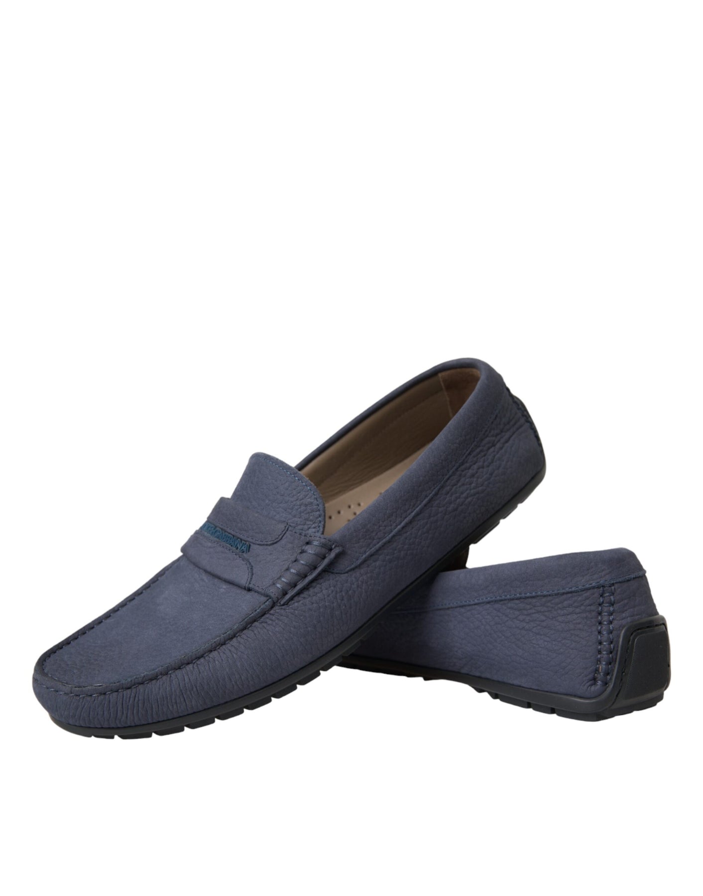 Dolce & Gabbana Blue Calf Leather Slip On Moccasin Shoes