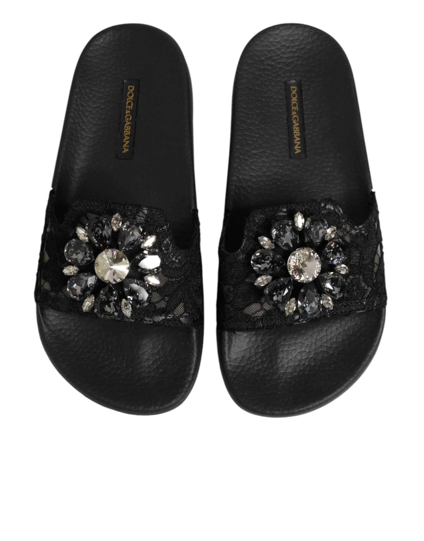 Dolce & Gabbana Black Devotion Matelassé Leather Slides Shoes