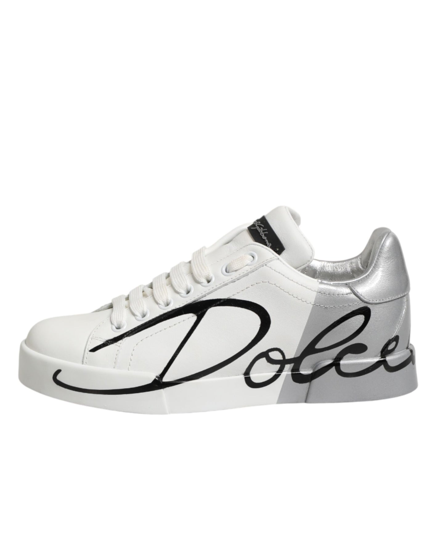Dolce & Gabbana White Gray Low Top Leather Sneaker Shoes